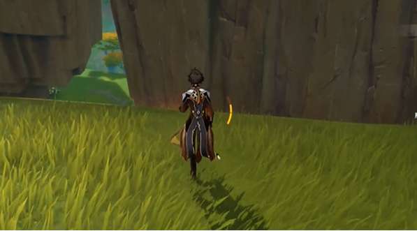 3、来到悬崖边上,也就是下图所示位置往下滑翔。