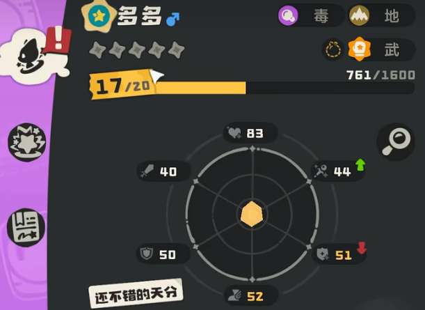 说到实力方面,多多的种族331值总共是331点。这个数值在初始阶段能抓到的精灵里面,算是中等偏下的水平。它的各项数值分配得比较均匀,没有特别突出的地方,当然也不存在明显的短板。多多主要是靠毒属性来输出伤害,如果碰到被它克制的对手,打起来还是挺轻松的。