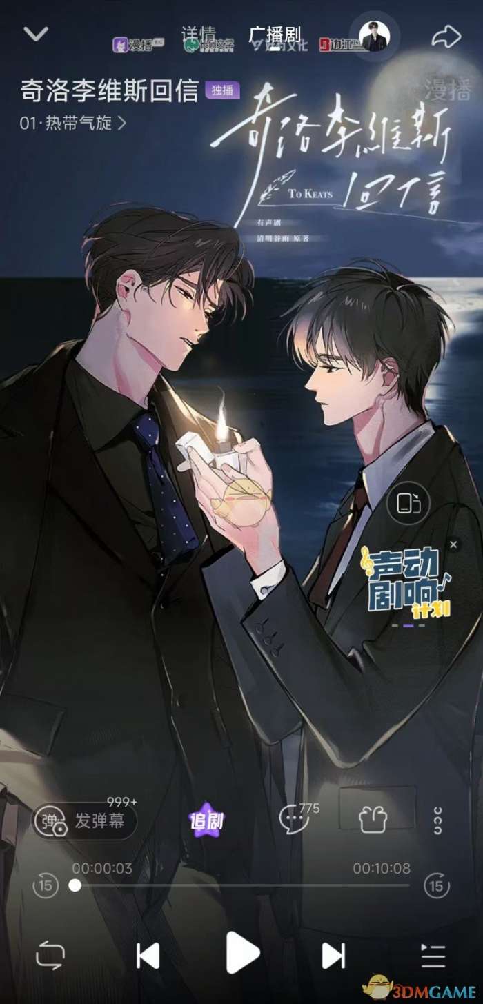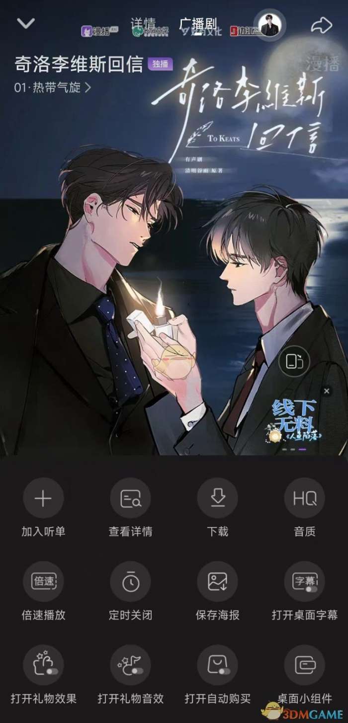 2、进入软件之后找到感兴趣的广播剧进入播放页面,点击进度条右上角的三个点按钮