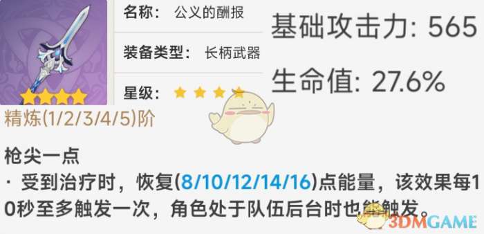 《原神》长柄武器公义的酬报数据一览
