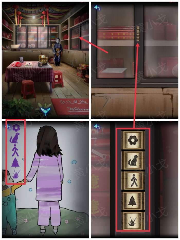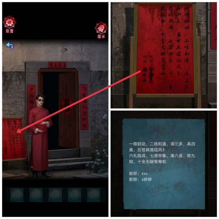 7.点击门上的密码锁,根据拖把和海报上的线索,输入密码:婚囍娶嫁