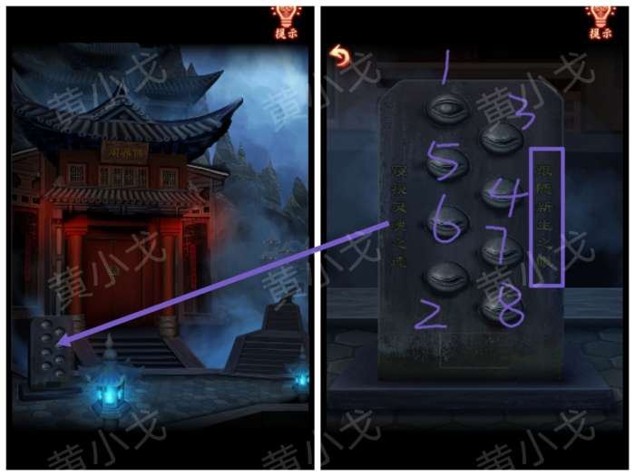18.点击石碑,根据石碑上的提示,按顺序点击眼睛