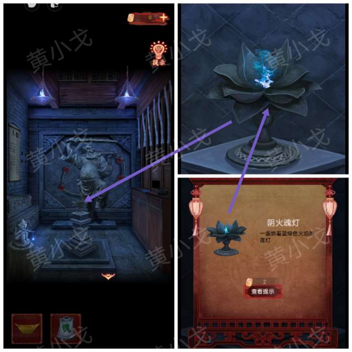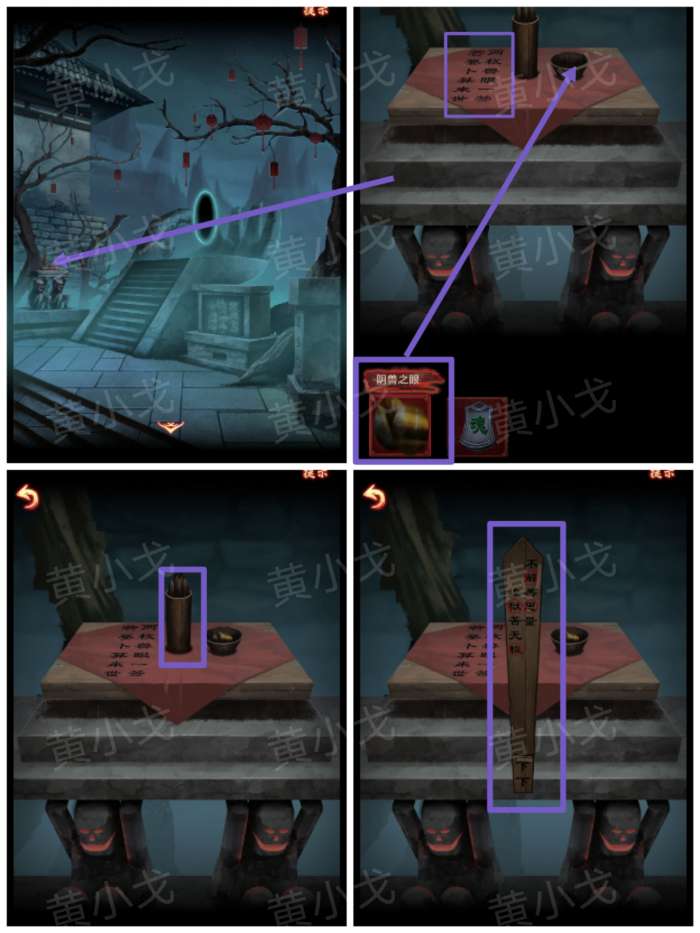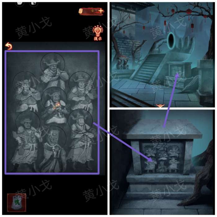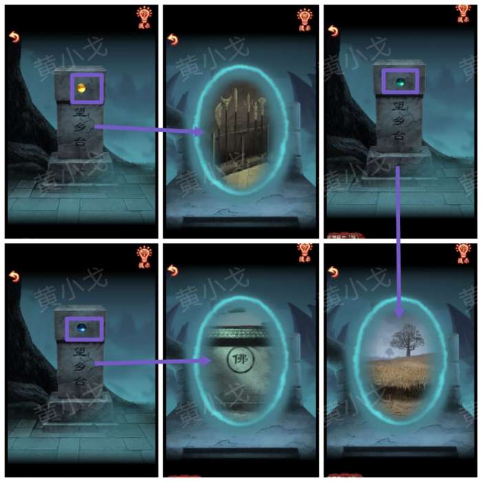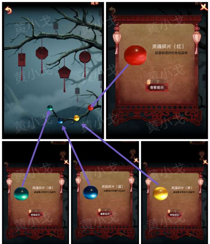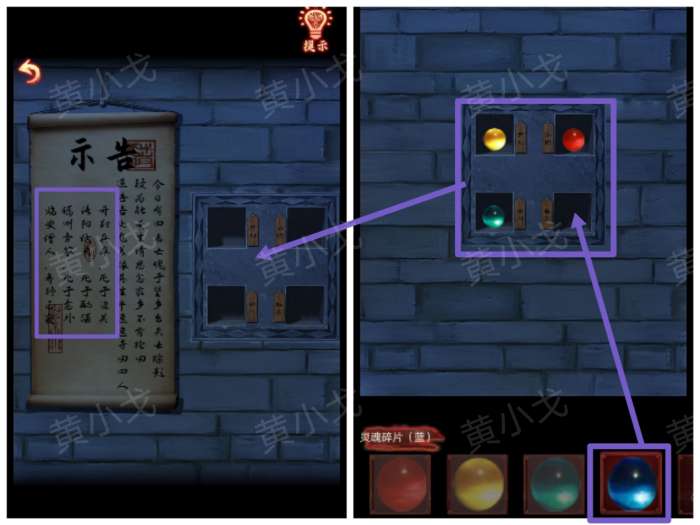 7.根据告示上的线索及望乡台上的线索,把四颗【灵魂碎片】放入对应地点的格子中