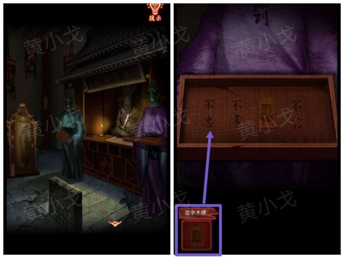 10.点击紫色衣服阴司,将【忠字木牌】放到托盘上