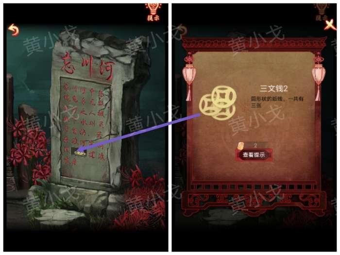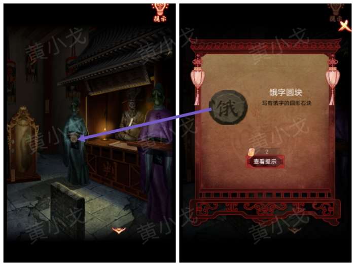 12.点击孽镜台,放入【饿字圆块】;点击镜面,获得【信字木牌】