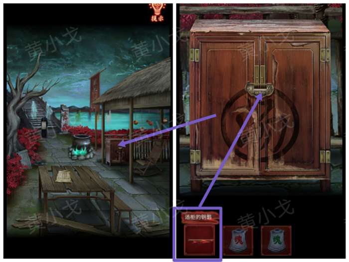 22.点击汤柜,用【汤柜的钥匙】打开上面的锁