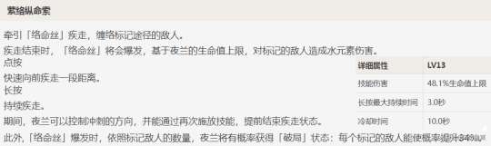 「络命丝」效果:每次疾走结束会爆炸造成【水元素伤害】,根据标记的敌人数量提高几率获得「破局失」的发射资格。标记三个就已经超过100%了。(每次看到头上出现一个图标,都可以直接蓄力射一发,当做战技的追加攻击。)