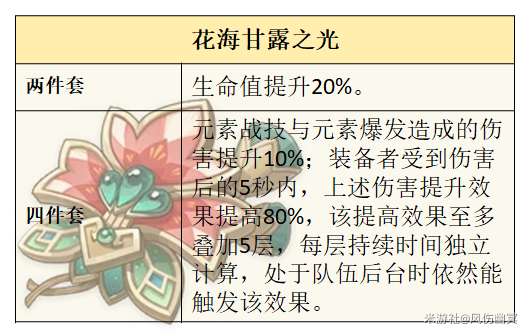 适合在「原绽放」或「烈绽放」的队伍里站场使用,刚好种子炸自己受伤叠层,自己普攻触发自己的大招,或者「燃烧」也可以,与敌人贴身烧自己。