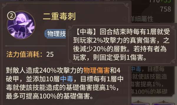 由于中毒的伤害计算是以攻击力为基础,强化攻击力等于同时强化技能和中毒的伤害,一举两得,非常nice。