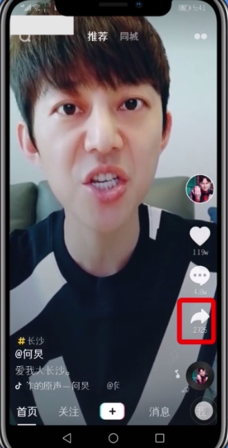 1、打开抖音APP,点开你喜欢的视频,点击视频旁边的【转发】,