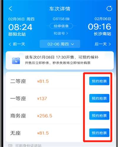 3.选择你要预约的日期,点击查询,选择你想要的车次