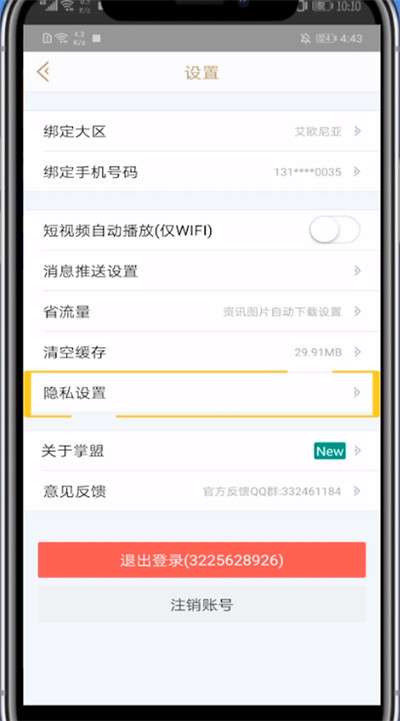 4、点击隐私设置