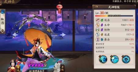 御灵未强化1级神乐,我人物等级是40级。带疾风和伞就好了。