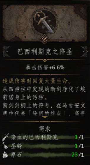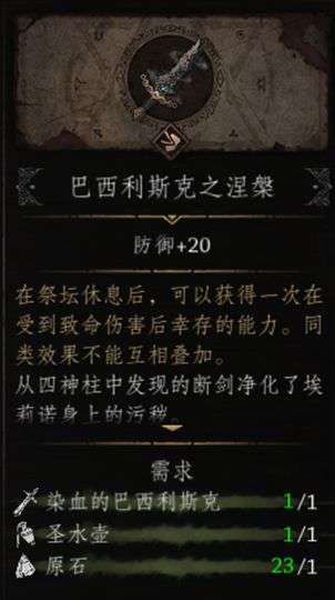 用真圣剑进行修女埃莉诺剧情,获得【染血的巴西利斯克】和【染血的遗书】。