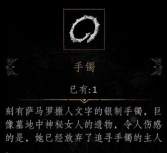 十二、巨像墓地内和祭坛边的NPC对话,获得任务道具【手镯】。与维奥拉有新对话,[血脉相连]。