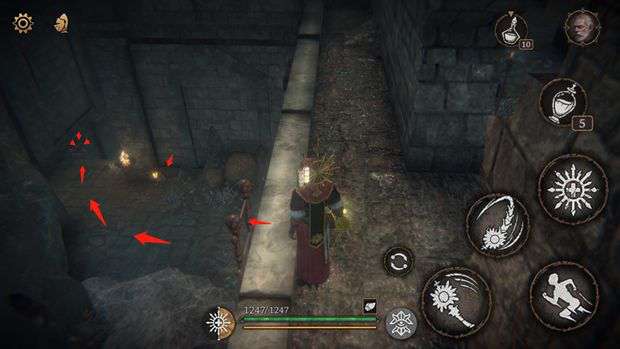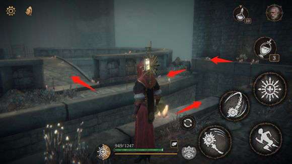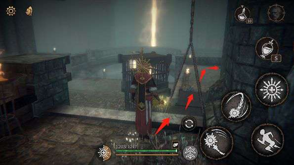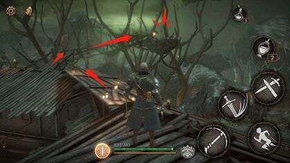 一、从第一个祭坛出发,经过黑精商人后来到屋顶的岔路口位置。