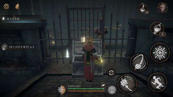 二、在艾克哈特旁边,乘坐升降梯往上,到圣剑雕像处可以获得【崔斯坦的慈悲】,并出现4个弓箭手,此时到手的是假圣剑。按雕像正对的方向看去,过桥后即是第一个四神柱,附近有1个骑士和2个弓箭手。开门后,即可获得圣剑碎片【灰暗的剑格】和【狂人日记】。(第一个圣剑碎片到手)