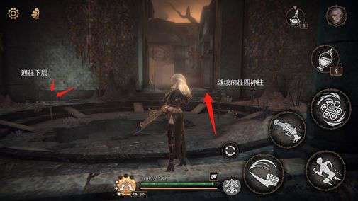四、让我们再次回到自裁修女的大厅,继续向前出发,在骑士与小丑缠斗的地方,左拐,即可看到第三个四神柱。
