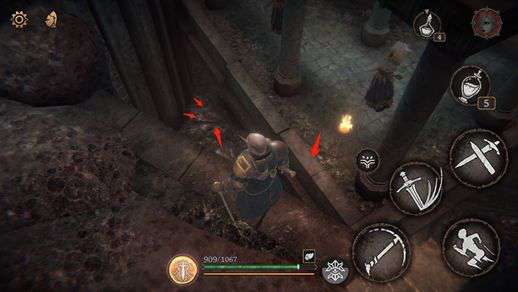 一、从祭坛一路前进会碰到被钉在墙上的无头骑士,