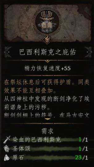 选择【放入残剑碎片】,即可获得【赐福的巴西利斯克】。