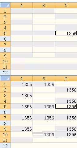 选取内容和输入相同内容的步骤是一样的,然后在确定时用的是Shift Enter的组合键,输入的顺序是按刚才选取单元格的逆序!虽然这样还是不能够达到顺序填充数字,但已比一个一个输入简单得多了。
