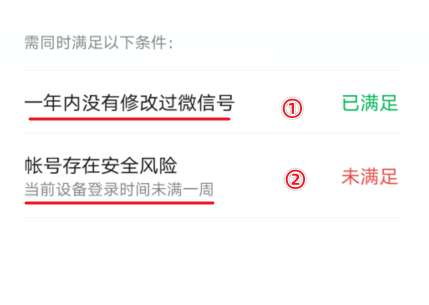 条件一:一年内没有修改过微信号。