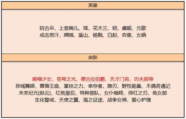 永久皮肤自选宝箱:打开后可任意选择以下奖励之一:小乔-万圣前夜、鲁班七号-福禄兄弟、梦奇-美梦成真、裴擒虎-街头旋风、大乔-伊势巫女、皮肤碎片*10。