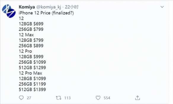 还有爆料称iPhone 12系列不再提供64GB版本,非Pro版本起步增加至128GB,Pro版最高512GB。