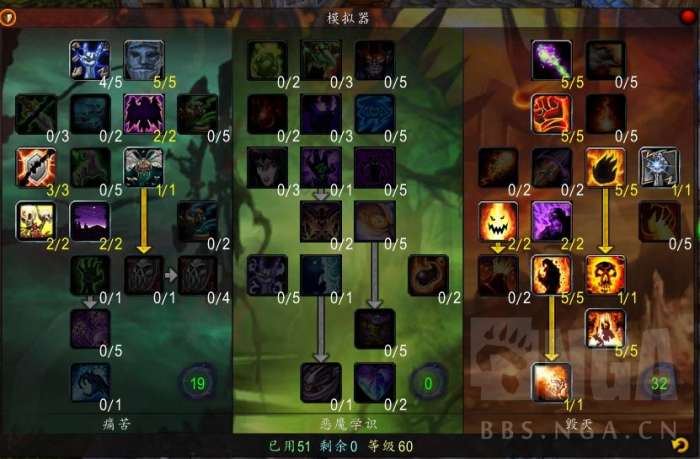 对比传统的暗毁天赋,只少了10%暗伤,但多10%火伤+25%献祭初始伤+10秒1次燃烧,再加上火法提供的15%火伤,理论上应该不亏。