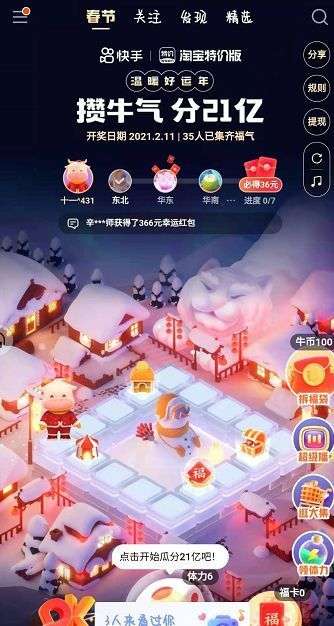活动期间,首次进入活动页面,可以获得三次抽卡机会。做任务来获得抽卡机会,比如打开快手极速版,预约除夕开奖,电脑刷 快手,打开快看点app等。