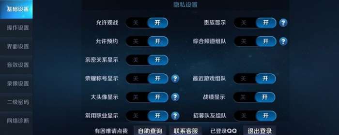 王者荣耀隐私设置大全: 对于有些操作水平比较差的玩家,当然不希望别人尤其是自己的游戏好友看到自己那么水的操作了。此事玩家也可以在基础设置→隐私设置中关闭“允许观战”功能。 当玩家在游戏中消费一定的点券就能获得相应等级的贵族,目前贵族一共有8个等级,如果玩家不想让别人知道自己那么“败家”,此时可以关闭贵族显示,这样别人就看不到你的贵族等级了。 有时候我们在游戏的时候会经常受到陌生人的邀请,如果玩家不希望被那些陌生人所打扰,此时可以关闭“综合频道组队”模式,这样陌生人就打扰不了你了,不过游戏中的好友还是可以邀请到你的。