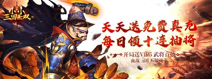 跨服争霸,丰厚奖励,三国王者,巅峰对决!作为一款三国攻防战略卡牌手游,《小小三国无双(天天送真充)》颠覆传统策略游戏玩法,集合卡牌、养成、塔防、战略等多个元素打造掌上三国超爽策略战场!阵容搭配、城防建设、资源掠夺、跨服PK真实还原三国沙场烽火连天!想要成为三国霸主吗?赶快放马来战吧!现在登陆游戏即送VIP5,真充值卡天天送,免费提升VIP,助你三国梦!