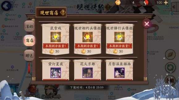 收集现世钱币,还可在现世商店中,兑换更多奖励。