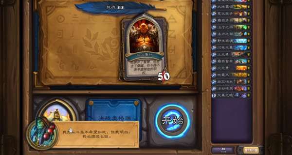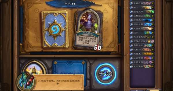 npc:会有几个阶段,3费灼热之握(消灭最左边的敌方随从),100血后转成4费粉碎(消灭最左边的敌方随从,并粉碎对手最左边的手牌),50血后转成5费大灾变(消灭最左边的敌方随从,并粉碎对手最左边的手牌以及牌库顶的牌)