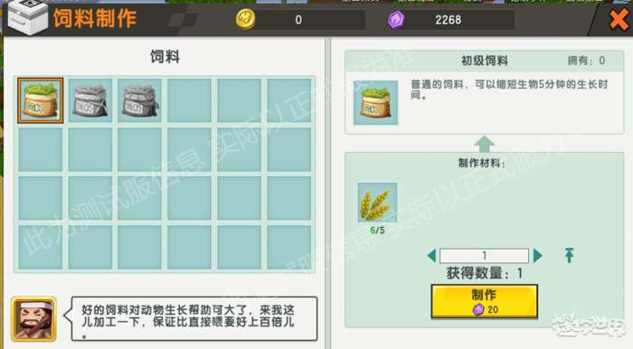 除此之外,牧场商人也有自己的名字啦,他叫力哥!冒险家们可以在他这里进行购买宠物蛋、出售牧产物以及升级扩建牧场外,新版本中将会加入加工饲料功能喔!饲料会分三种等级(初级/中级/高级)对动物使用可以缩短动物物的生长时长喔,而且不同等级的饲料缩短生长时长也不同。最重要的是当大家都给动物喂养的时候,动物也会也会产生新道具动物粑粑,这将是加工肥料的重要道具喔!