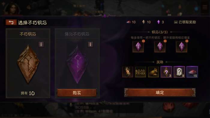 开启[不朽秘境]时需要消耗入场券,也就是“不朽钥石”,消耗不同的钥石后获得的奖励也会有所不同。使用“不朽钥石”后,奖励中将必定掉落数个符文,还有概率掉落传奇宝石。而使用“强化不朽钥石”后,将必定掉落数个符文和1个传奇宝石。使用更多钥石,奖励也会不断叠加。