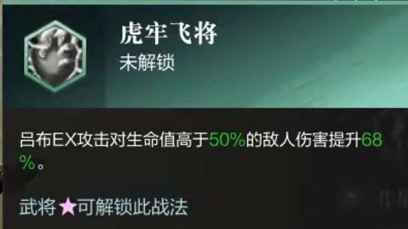 吕布EX攻击对生命值高于50%的敌人伤害提升68%。
