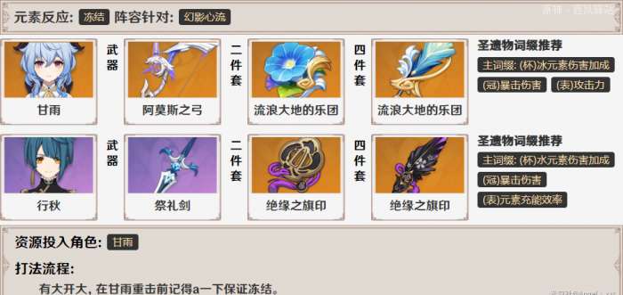 比较推荐的是使用永冻流,以甘雨行秋或者神里行秋为核心来完成持续冻结。