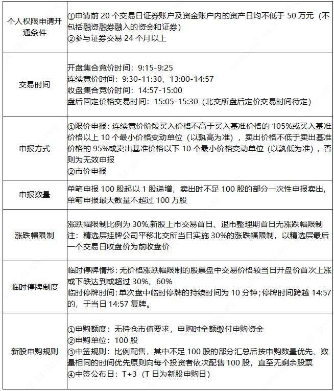②存量股转合格投资者交易权限调整:根据北交所投资者适当性管理相关业务规则,我司已为存量股转一、二类合格投资者增加北交所股票交易业务权限,支持存量股转一、二类合格投资者进行北交所股票交易。后续新开股转一、二类合格投资者权限的客户,如符合北交所权限开通条件,也将同时开通北交所交易权限。