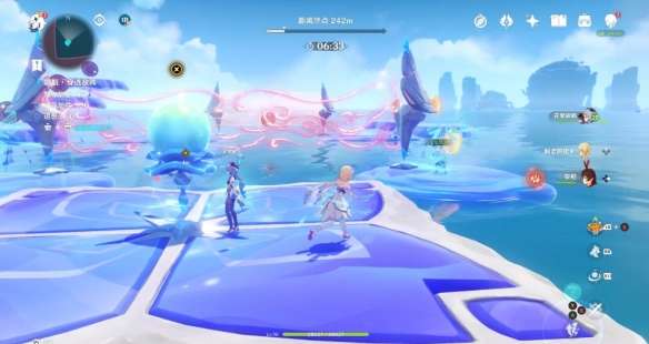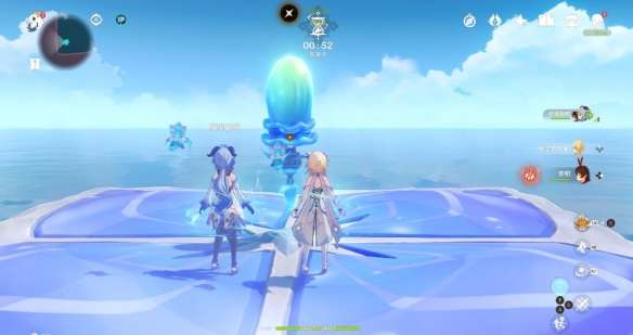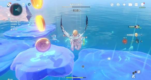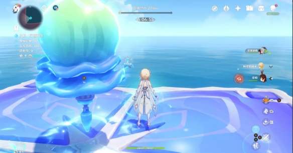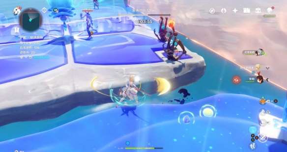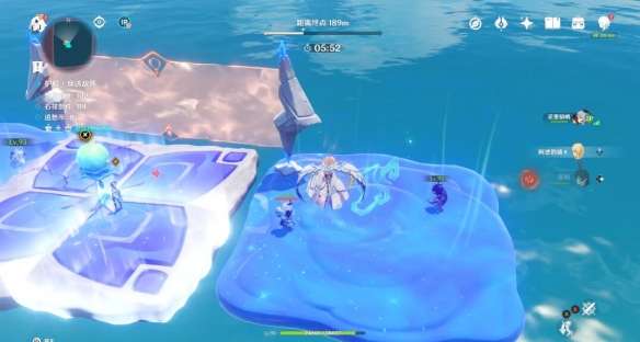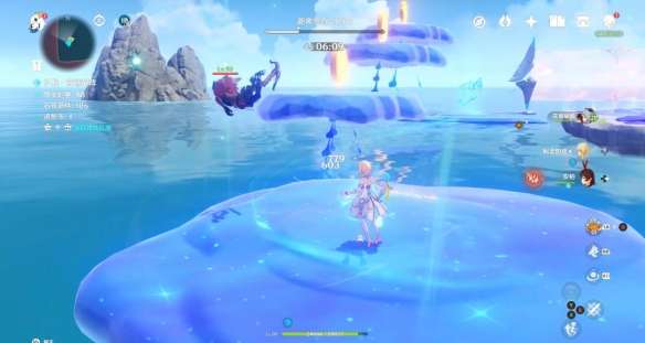 和之前一样 将丘丘人击入水中即可 不用打败他 石筏靠近平台 丘丘人浮现 石筏远离平台 丘丘人消失