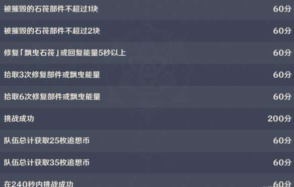 4.修复「飘曳石筏」或「回复能量」5秒以上 60分