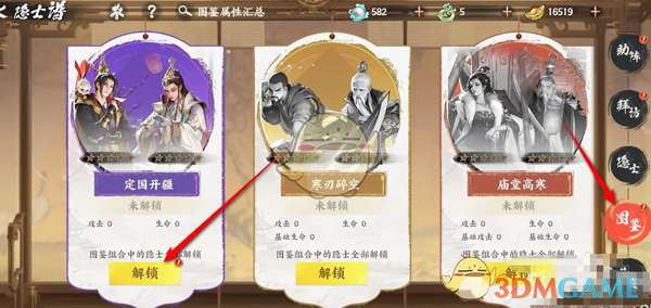 2、在隐士谱页面,点击右侧的图鉴,在点击下面的解锁即可;