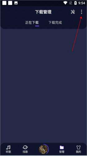 1.打开Fly音乐的【管理】页面,右上角会看到扩展菜单,小伙伴们点击一下就能展开更多操作(下图红色箭头所指)。