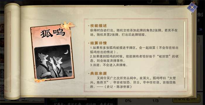 陈胜:群雄逐鹿模式打的也是手牌资源,陈胜可将7张狐鸣放入牌堆,抽到要给陈胜2张牌,自己优势直接拉满。陈胜可以给所有角色过牌,在自身体力值变为1的,还可以摸3张牌、立即进行回合,有一定翻盘的机会。