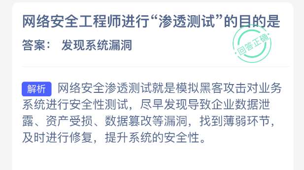 以上就是网络安全工程师进行渗透测试的目的是?支付宝蚂蚁新村最新答案2026年2月2日,更多精彩内容,请点击关注pk游戏网更新!