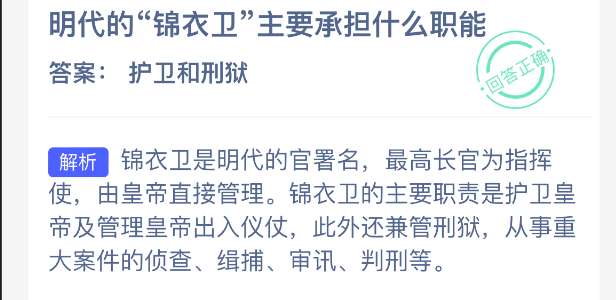 以上就是明代的“锦衣卫”主要承担什么职能?支付宝蚂蚁新村最新答案2026年1月27日,更多精彩内容,请点击关注pk游戏网更新!