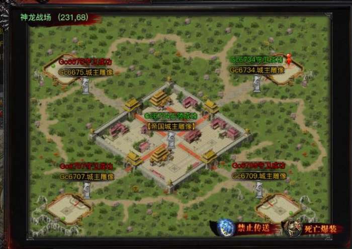 战场布局:神龙战场内设 5座雕像——中央帝国雕像 + 东/南/西/北四方位
