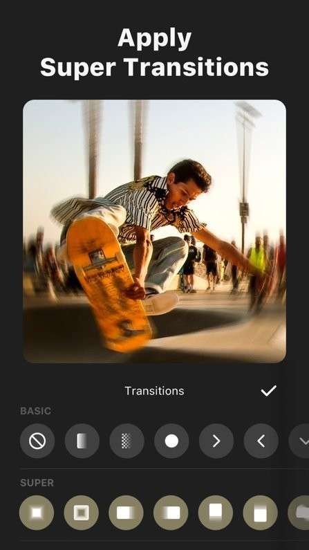 应用自带交叉、闪黑、擦除等多种过渡效果,使视频片段之间的过渡更加自然流畅,增强了观看的连续性和趣味性。提供了各种过滤器,动画贴纸,文本样式和音乐库,允许用户轻松地为视频添加个性化的颜色。