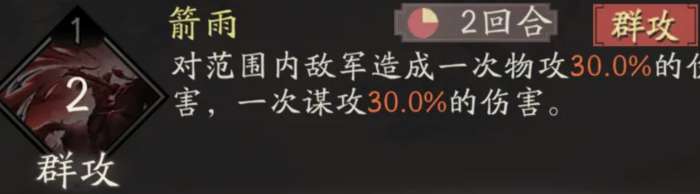 同时韩浩的加攻buff适用于所有的aoe攻击,包含有主公技“箭雨”,箭雨对范围内的敌军目标,可以造成一次基于自身基础攻击倍率30%的伤害,并且,还会附加一次谋攻30%的伤害,该伤害叠加韩浩的buff,可以直接穿透敌军。