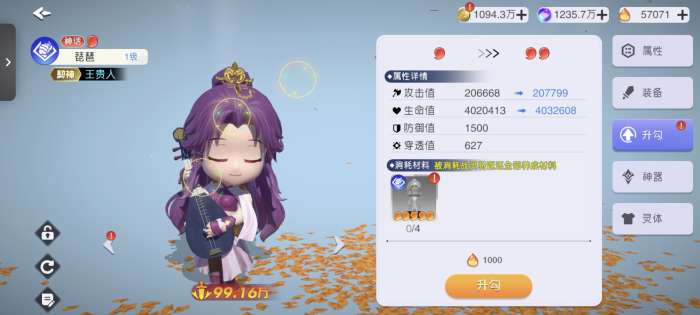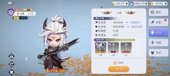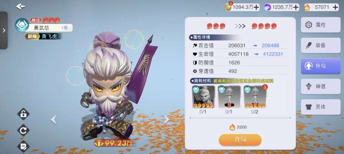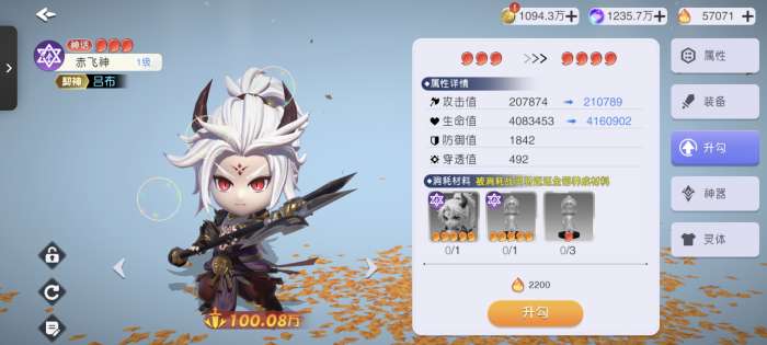 游戏分为六个阵营,其中神魔阵营升勾需求一致,红蓝黄绿四阵营需求一致。